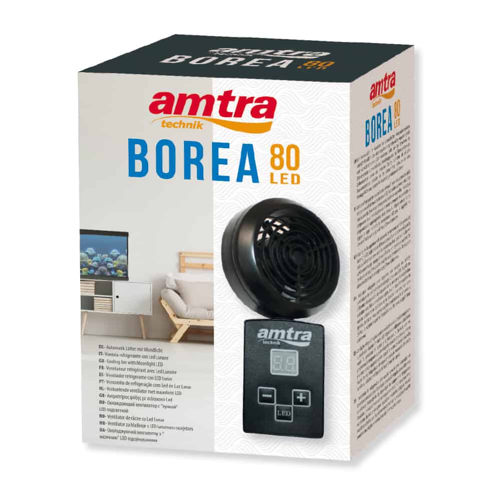 AMTRA BOREA 80 LED: koelventilator voor aquarium met automatische temperatuurregeling en LED voor maan-/actinische verlichting. Uitgerust met een nauwkeurige sensor voor het detecteren van de waterte...