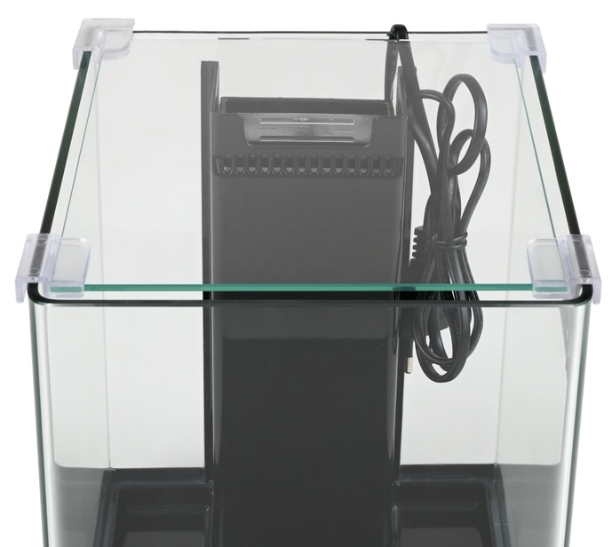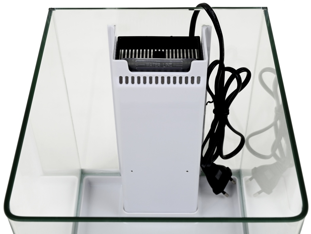 Het aquarium is voorzien van helder frontglas van 4 mm dik, energiezuinige LED verlichting met 21 LED diodes en een intern filtersysteem met een 3-laags mediacartridge voor effectieve mechanische en biologische filtratie.
