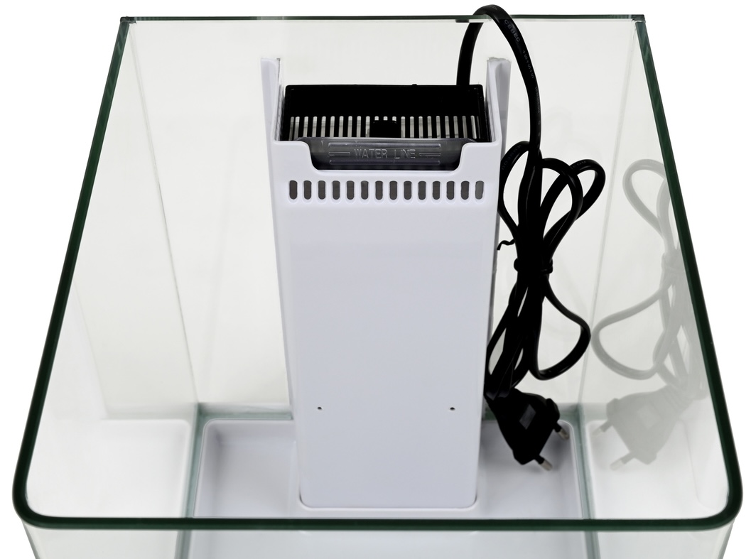Het aquarium is voorzien van helder frontglas van 4 mm dik, energiezuinige LED verlichting met 21 LED diodes en een intern filtersysteem met een 3-laags mediacartridge voor effectieve mechanische en biologische filtratie.