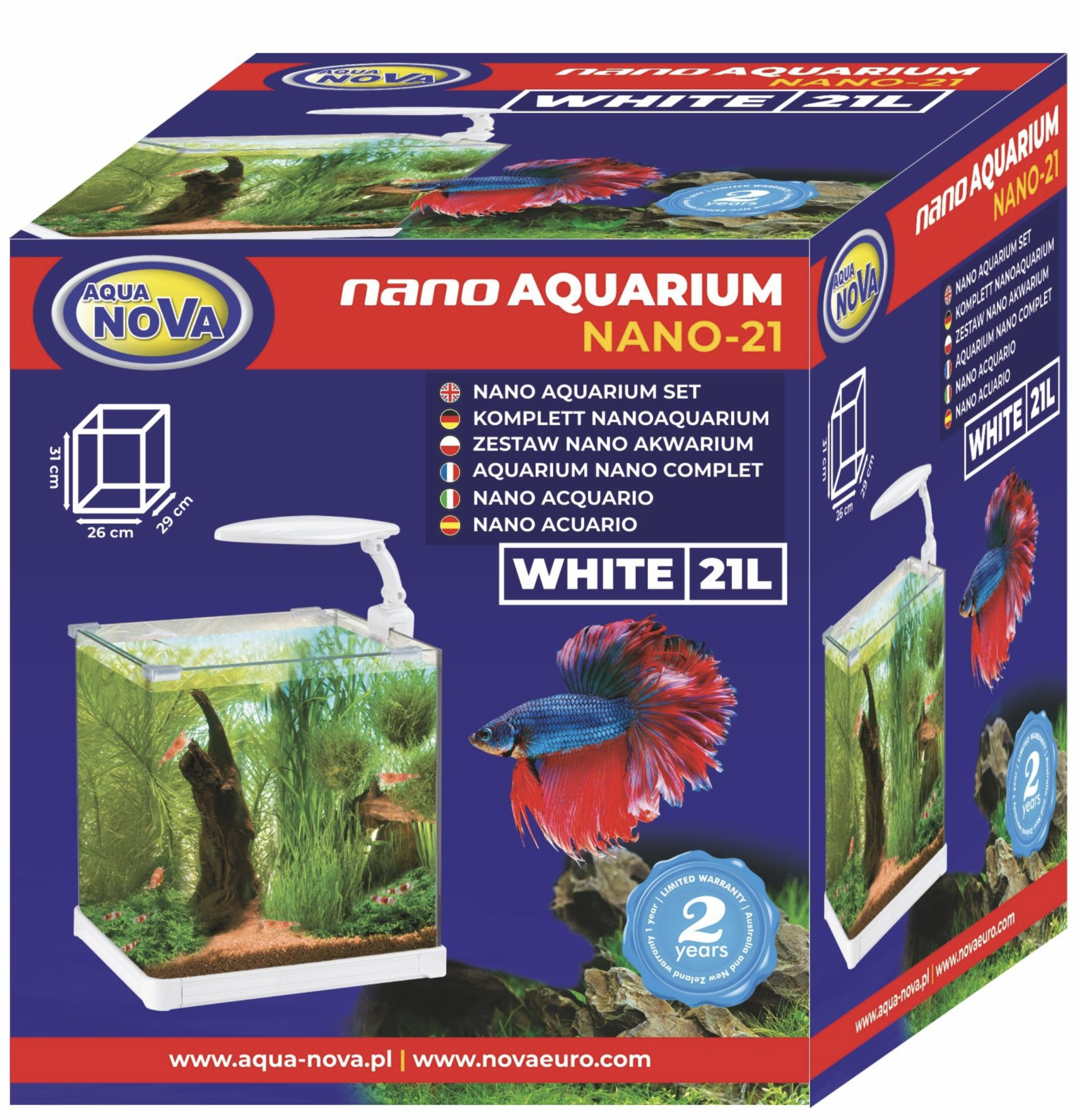 De Aqua Nova NANO-21 is een compact en energiezuinig aquarium met geïntegreerde LED verlichting en een efficiënt intern filtersysteem. Dankzij het moderne ontwerp en de complete uitvoering is dit aquarium ideaal voor kleinere aquascapes, garnalen of kleine siervissen.