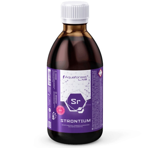 Aquaforest Strontium Lab is een geconcentreerd supplement dat speciaal is ontwikkeld om het strontiumniveau in rifaquaria op peil te houden. Strontium is een essentieel sporenelement dat een belangrijke rol speelt bij de skeletvorming van koralen.