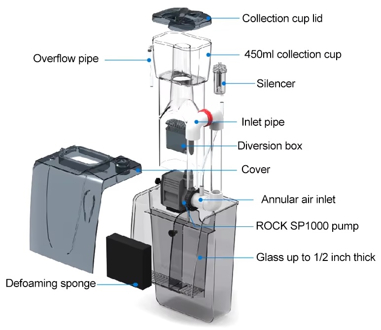 De BM QQ3 combineert prestaties, gebruiksgemak en compactheid in één slim ontwerp. Ideaal voor zee- en rifhouders die geen sump gebruiken maar wel een effectieve afschuimer willen. De krachtige luchtinjectie zorgt voor een uitstekende schuimvorming, terwijl de transparante opvangcup het eenvoudig maakt om de afscheiding te controleren en te legen.