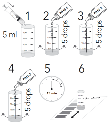 - Bepaal de NH3-waarde met behulp van de meegeleverde kleurkaart