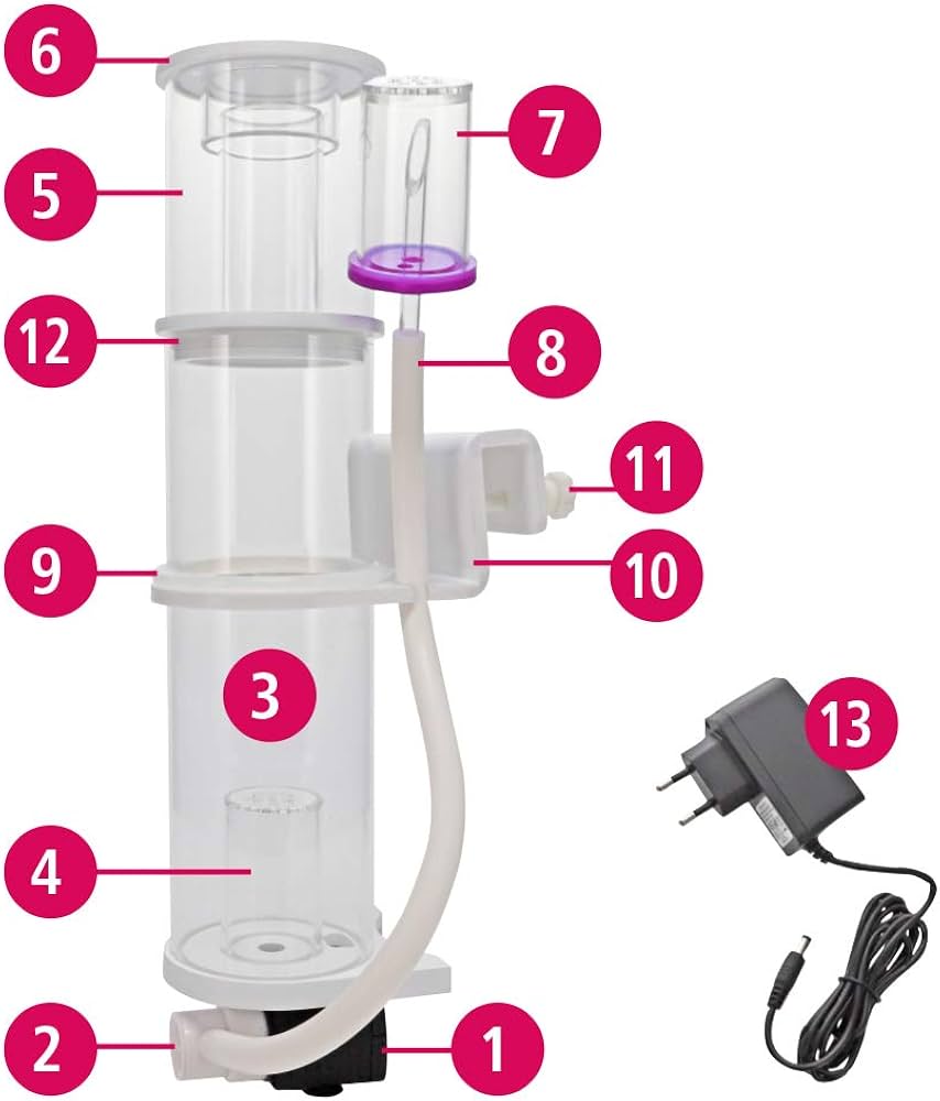 Eiwitafschuimers behoren tot de belangrijkste technische apparaten in een zoutwateraquarium en hebben als belangrijke taak om organische verontreinigingen, zoals eiwitverbindingen, uit de waterkringloop te verwijderen voordat deze via biologische afbraakprocessen worden omgezet in stikstof (bijv. nitraat). Door het toevoegen van voer, organisch afval, dode algen, dieren en micro-organismen wordt het zoutwateraquarium voortdurend verrijkt met proteïneverbindingen. Omdat een groot deel van deze verbindingen wordt afgebroken door nitrificatie, wat sneller gebeurt dan denitrificatie, hoopt zich bij hoge vervuilingsniveaus in de loop van de tijd schadelijk nitraat op. De Cube Skimmer verwijdert eiwitten (eiwitverbindingen) en anorganische en organische moleculen uit het water voordat de bacteriën deze kunnen afbreken. Hierdoor wordt het aquariumwater ontlast en het nitraatgehalte blijvend verlaagd.