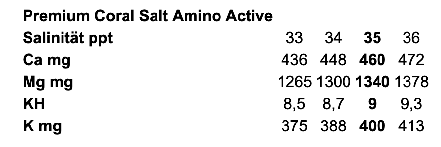 Premium Coral Salt Amino Active wordt op basis van de nieuwste wetenschappelijke inzichten gemaakt van farmaceutisch zuivere zouten in de meest zorgvuldige productie, zonder gebruik van chelaten. Door de hoge biologische beschikbaarheid van de afzonderlijke sporenelementen worden de leefomstandigheden van de afzonderlijke organismen duurzaam geoptimaliseerd en worden een perfecte koraalgroei en gezonde vissen gegarandeerd.