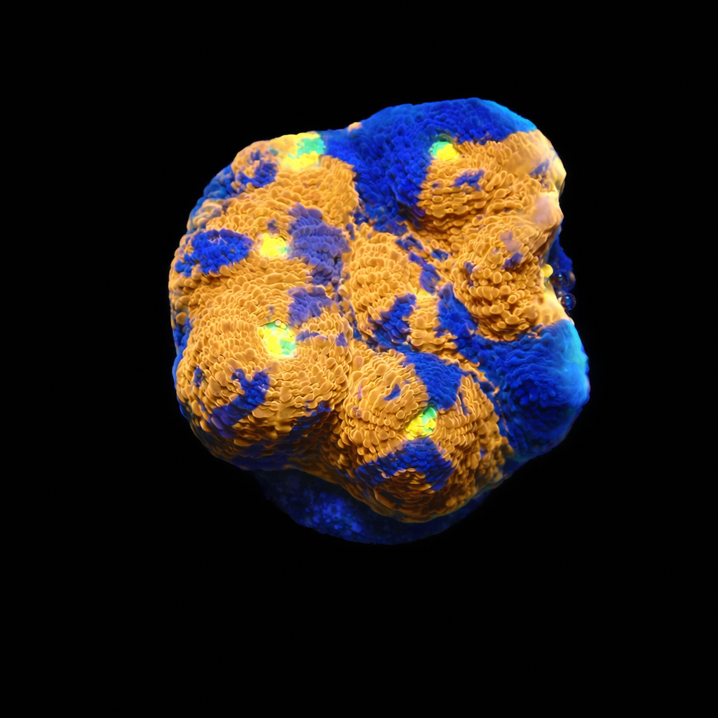 WYSIWYG1754993657079 Uniek stuk WYSIWYG Yellow Submarine Favia koraal. Eén op één, precies wat je ziet! Ben jij op zoek naar een echte eyecatcher voor je rifaquarium? Dit unieke WYSIWYG-koraal is een absolute must-have voor iedere serieuze reefkeeper. Geen stockfoto’s of verrassingen – wat je ziet, is exact wat je krijgt. En wat je krijgt, is spectaculair.