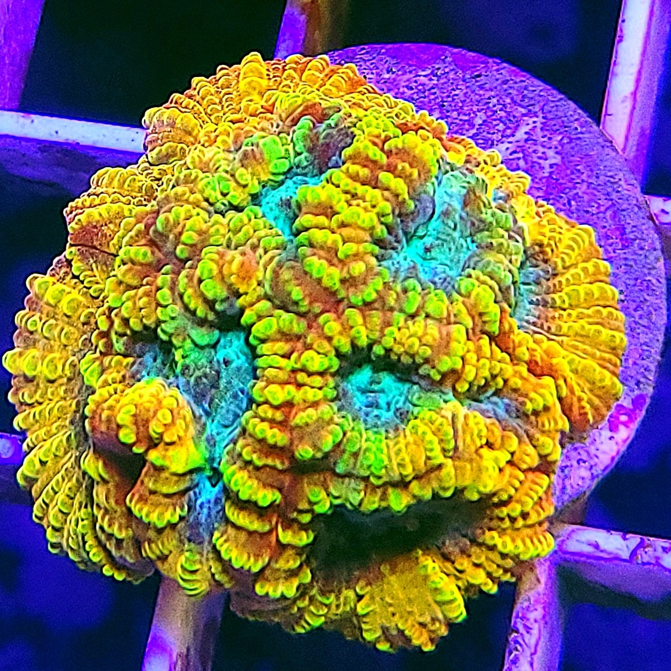 181016527 Een Favia Ultra Green / Grafted is in principe vrij makkelijk houdbaar, ook voor beginners. Deze zijn erg mooi, met name bij blauwe, nachtverlichting zeer fluoriserend.