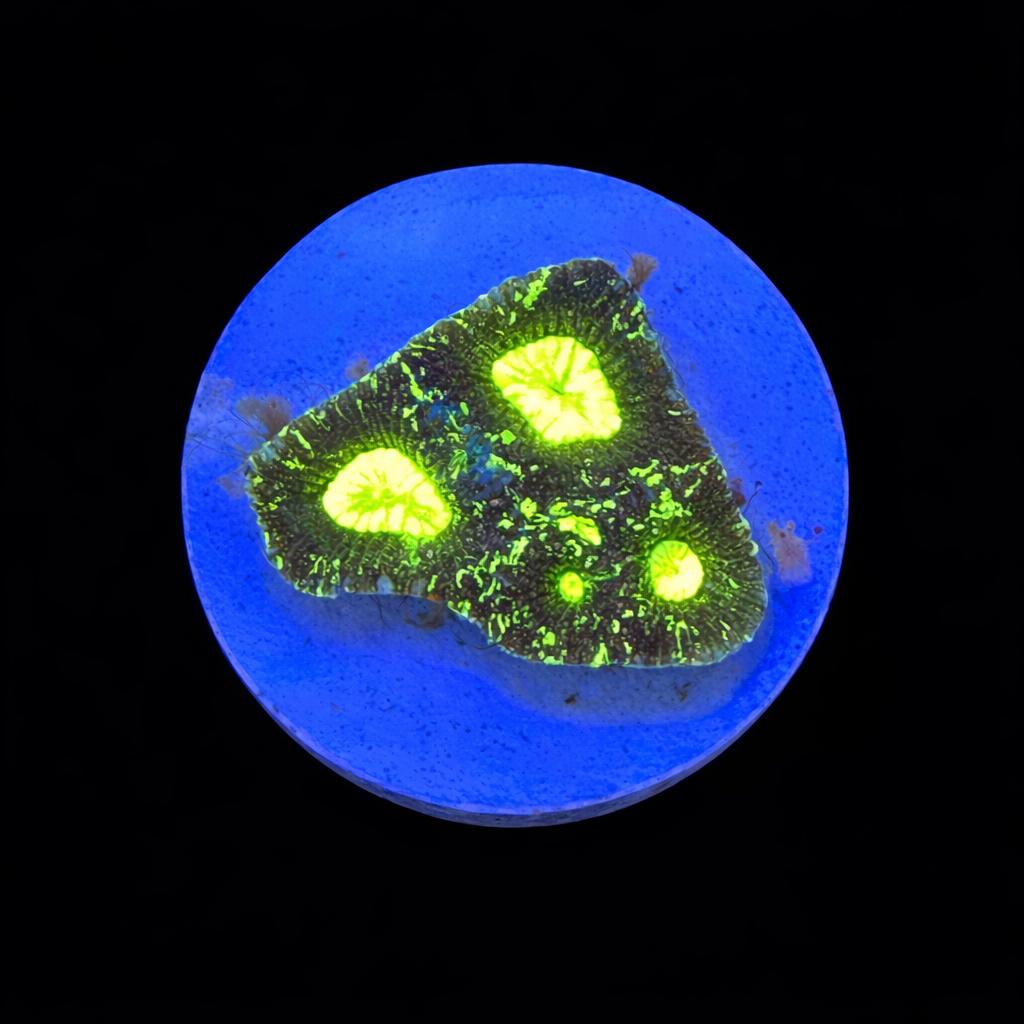 WYSIWYG1754993657079 Uniek stuk WYSIWYG Yellow Submarine Favia koraal. Eén op één, precies wat je ziet! Ben jij op zoek naar een echte eyecatcher voor je rifaquarium? Dit unieke WYSIWYG-koraal is een absolute must-have voor iedere serieuze reefkeeper. Geen stockfoto’s of verrassingen – wat je ziet, is exact wat je krijgt. En wat je krijgt, is spectaculair.