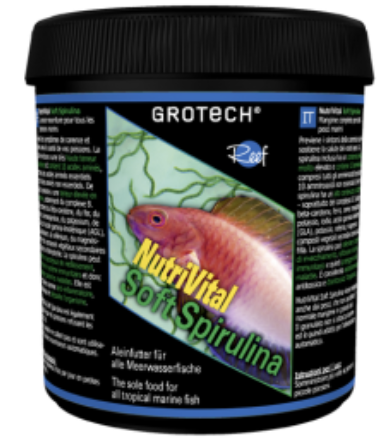 NutriVital Soft Spirulina is een zacht, hoogwaardig granulaatvoer dat helpt tekortverschijnselen te voorkomen en zo bijdraagt aan de gezondheid van alle zeewatervissen. Het toegevoegde Spirulina bevat een uitzonderlijk hoog eiwitgehalte en levert 18 aminozuren, waaronder alle essentiële aminozuren en tien niet-essentiële aminozuren.