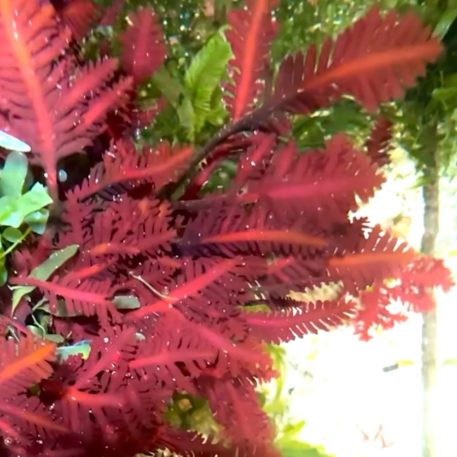 - Opvallende rode kleur en vertakte, varenachtige groeiwijze