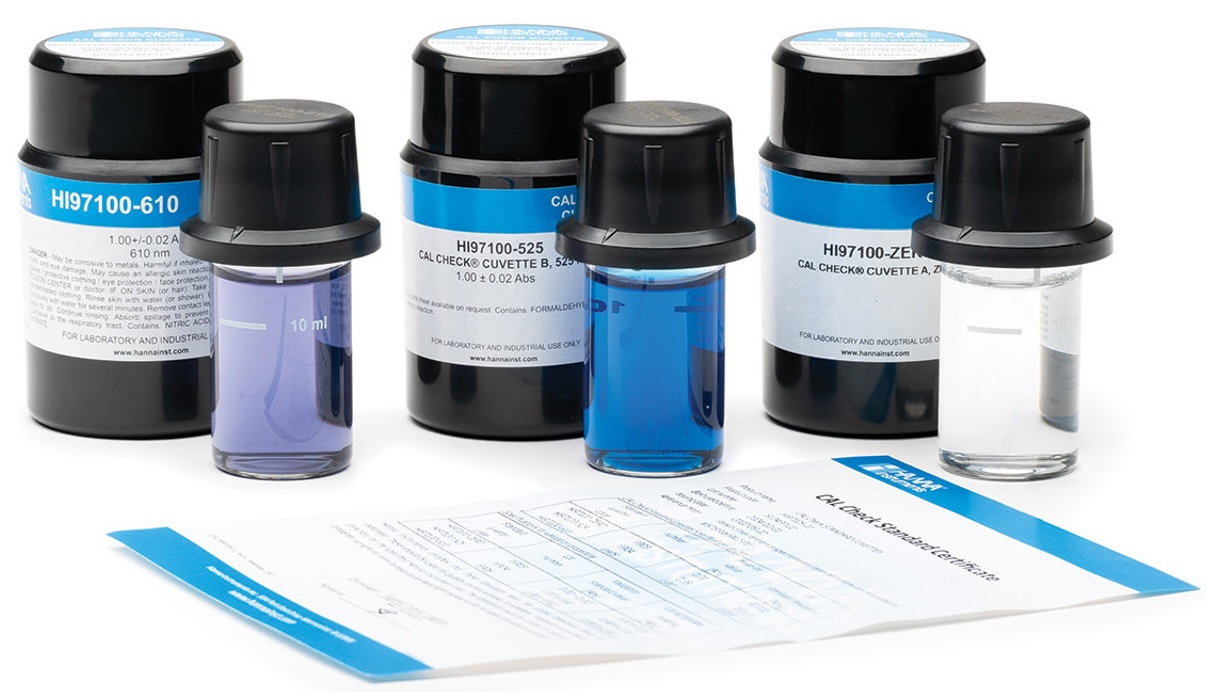 De HI97105-11 CAL Check™-normen bieden een eenvoudige oplossing voor het kalibreren en valideren van de HI97105 en HI97115 Marine Master-fotometers.