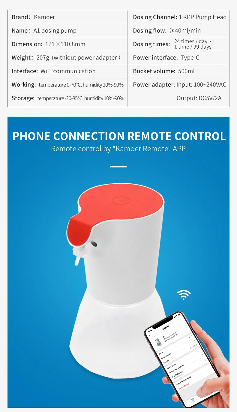 - Compact ontwerp: Klein formaat waardoor de doser eenvoudig te plaatsen is in elke aquariumopstelling.
