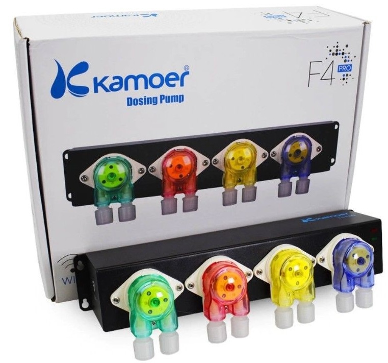 De Kamoer F4 Pro Wifi Doseerpomp is een geavanceerde en nauwkeurige doseerpomp, speciaal ontworpen voor het automatisch doseren van vloeistoffen in zeeaquaria. Dankzij de ingebouwde wifi-functionaliteit kan deze pomp eenvoudig worden bediend en geprogrammeerd via een smartphone-app, wat zorgt voor optimale controle en flexibiliteit bij het onderhoud van uw aquarium. De F4 Pro is geschikt voor het doseren van supplementen zoals kalk, magnesium, sporenelementen en andere additieven, essentieel voor het behoud van een gezond en stabiel marien ecosysteem.