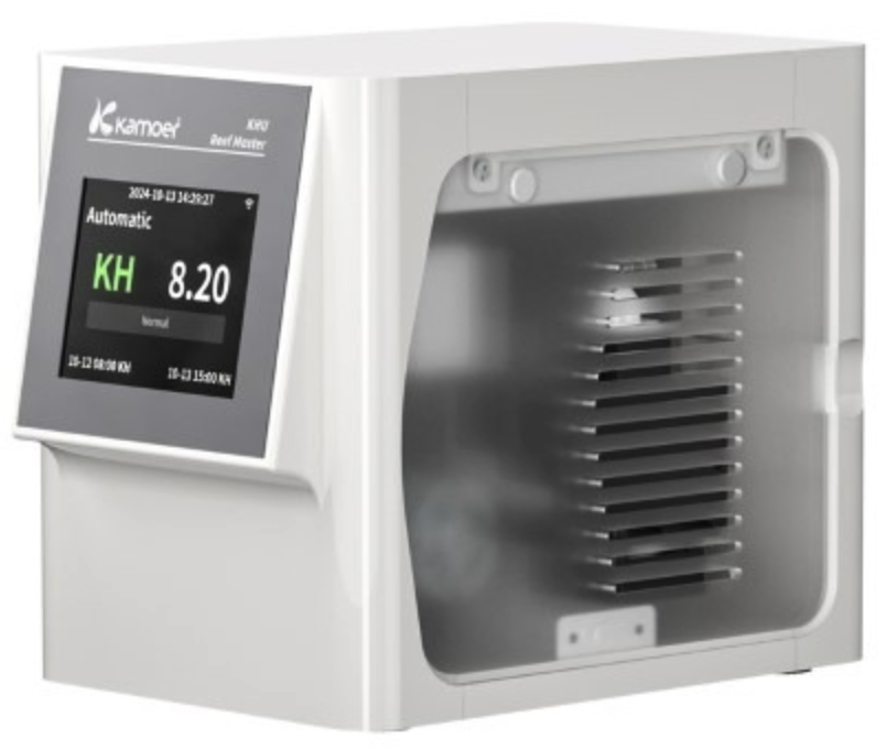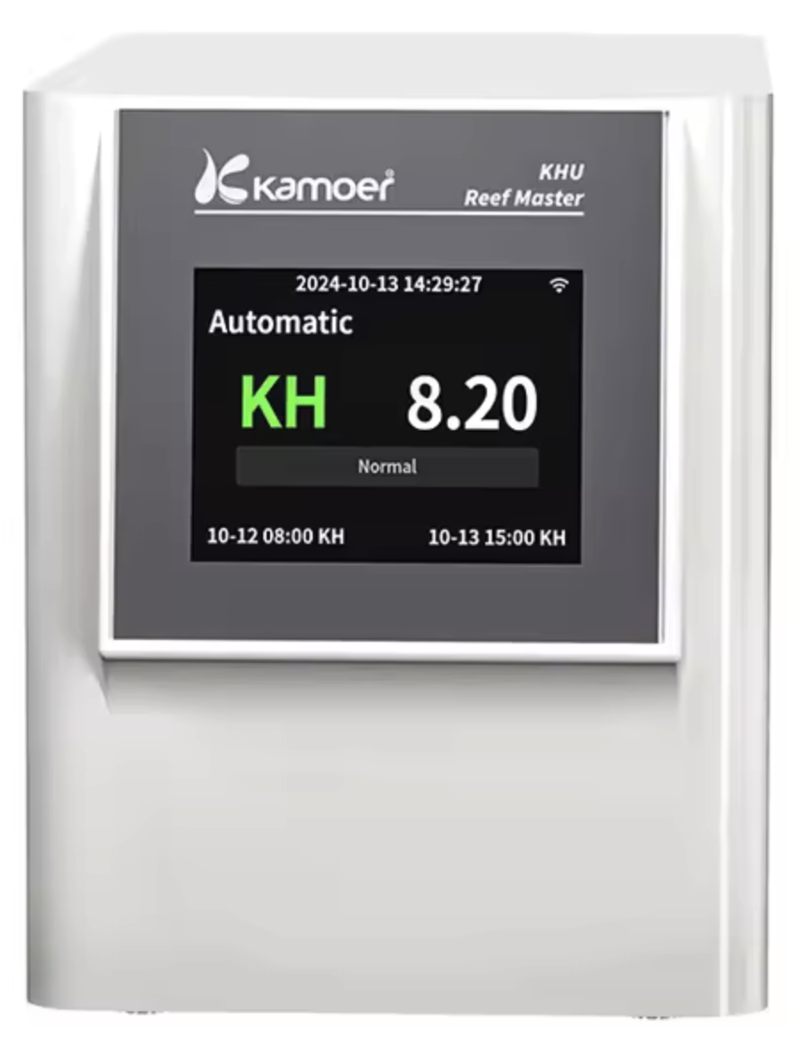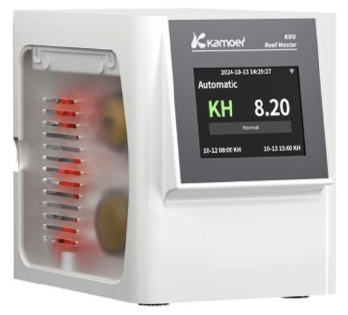 Reef Master KHU is een geautomatiseerd apparaat dat de KH-waarde van aquaria test. Het omvat handmatige tests, automatische tests en automatische KH-aanvullingsfuncties. Wanneer er een afwijking optreedt, kan een waarschuwing worden geactiveerd. Gebruikers kunnen de testresultaten eenvoudig bekijken en de parameters van de test instellen in de Android- of iOS-app. Het apparaat kan er ook voor kiezen om de KH-waarde automatisch aan te passen op basis van de testresultaten.