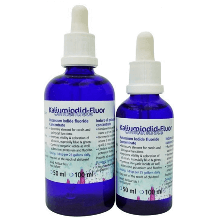Kalium Jodide/Fluoride Concentrate van Korallen-Zucht is geschikt voor alle soorten koralen. Door dit product toe te voegen aan het aquarium, leidt het tot betere blauwe kleuren bij SPS koralen, vooral bij Acropora en Montipora soorten. Het bevat anorganische jodide en broom, kalium en fluor en wordt aanbevolen voor elk zeewateraquarium.
