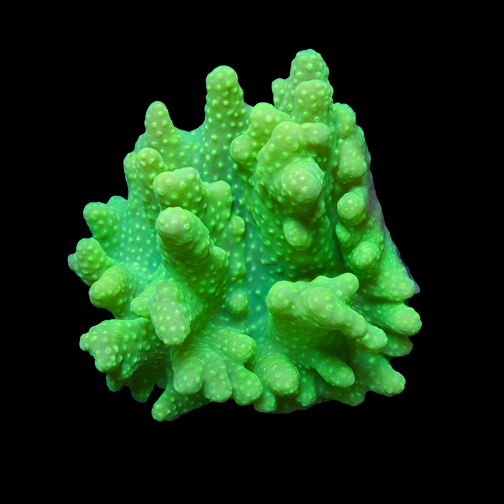 WYSIWYG1754992919086 Uniek stuk WYSIWYG Acropora Ultra Green koraal. Eén op één, precies wat je ziet! Ben jij op zoek naar een echte eyecatcher voor je rifaquarium? Dit unieke WYSIWYG-koraal is een absolute must-have voor iedere serieuze reefkeeper. Geen stockfoto’s of verrassingen – wat je ziet, is exact wat je krijgt. En wat je krijgt, is spectaculair.