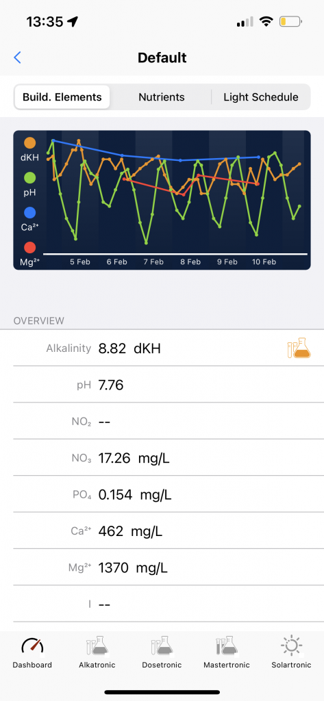 Alkaliteit (dKH) is het belangrijkste element dat snel verandert in een paar uur. Door alleen al de dKH te controleren, kunt u zien of andere apparatuur correct functioneert.