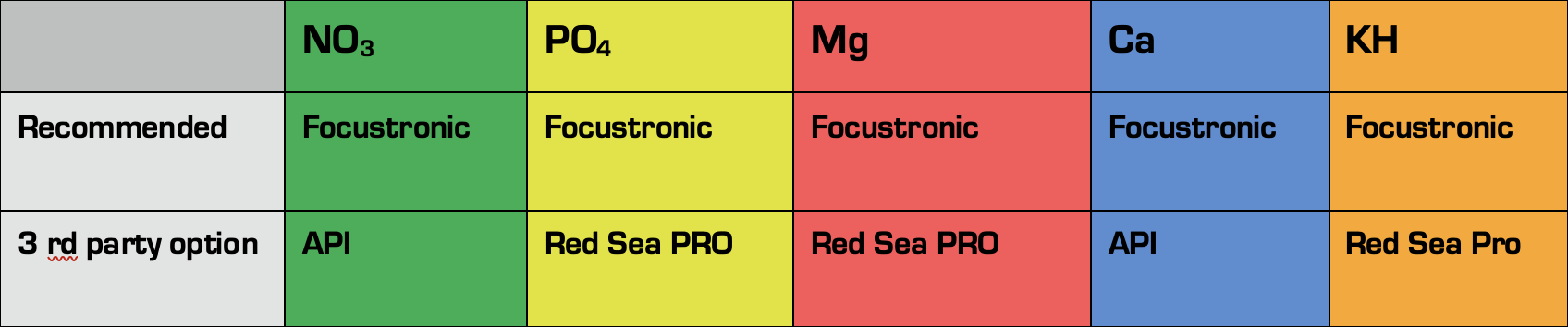 Dit zijn de bouwstenen voor het rifsysteem en reefers streven ernaar een evenwichtig niveau te bereiken, samen met de alkaliteit. Deze twee elementen reageren langzamer dan alkaliteit en daarom is regelmatige meting van Ca en Mg 2-3 keer per week, terwijl de waarden gelijk blijven, voldoende. Het is echter belangrijk om de BIG 3 (KH, Ca, Mg) in balans te houden voor een goede groei en kleuring.