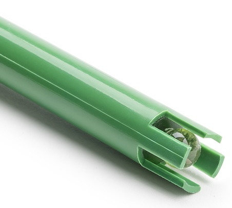 De referentie-aansluiting is een klein gaatje waarmee de meter het monster kan vergelijken met een referentie. De meetwaarde wordt gegenereerd op basis van het elektrische verschil tussen het monster en de referentie. Als het aansluitgat verstopt raakt, werkt de pH-probe niet meer.
