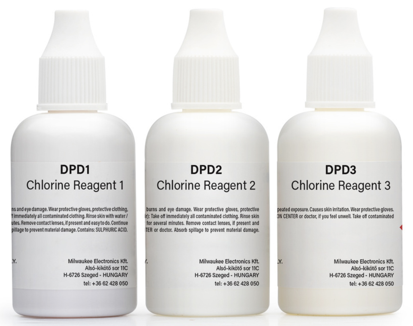 De Milwaukee MI504-100 vloeibare reagenskit is speciaal ontwikkeld voor gebruik met de Milwaukee MI404 Free & Total Chlorine, pH Meter. Deze hoogwaardige reagentia maken het mogelijk om snel en nauwkeurig het vrije en totale chloorgehalte in water te meten.