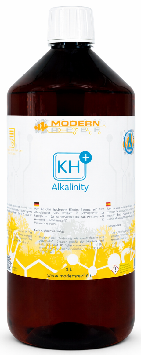 De Modern Reef - KH+ 1000ml is een hoogwaardige carbonaathardheidverhoger, speciaal ontwikkeld voor het stabiel houden van de KH-waarde in zeeaquaria. Een stabiele KH is essentieel voor een gezonde groei van koralen, het behouden van een optimale pH en het voorkomen van schommelingen in waterwaarden. Modern Reef KH+ is samengesteld uit zuivere, farmaceutische grondstoffen en zorgt voor een snelle en veilige verhoging van de carbonaathardheid zonder ongewenste bijproducten. Dankzij de geconcentreerde formule is het product zuinig in gebruik en eenvoudig te doseren, zowel handmatig als met een doseerpomp. Geschikt voor zowel beginnende als ervaren zeeaquariumhouders die streven naar kristalhelder water en gezonde, kleurrijke koralen. Met Modern Reef - KH+ 1000ml geef je jouw rifaquarium de beste ondersteuning voor een stabiel ecosysteem.