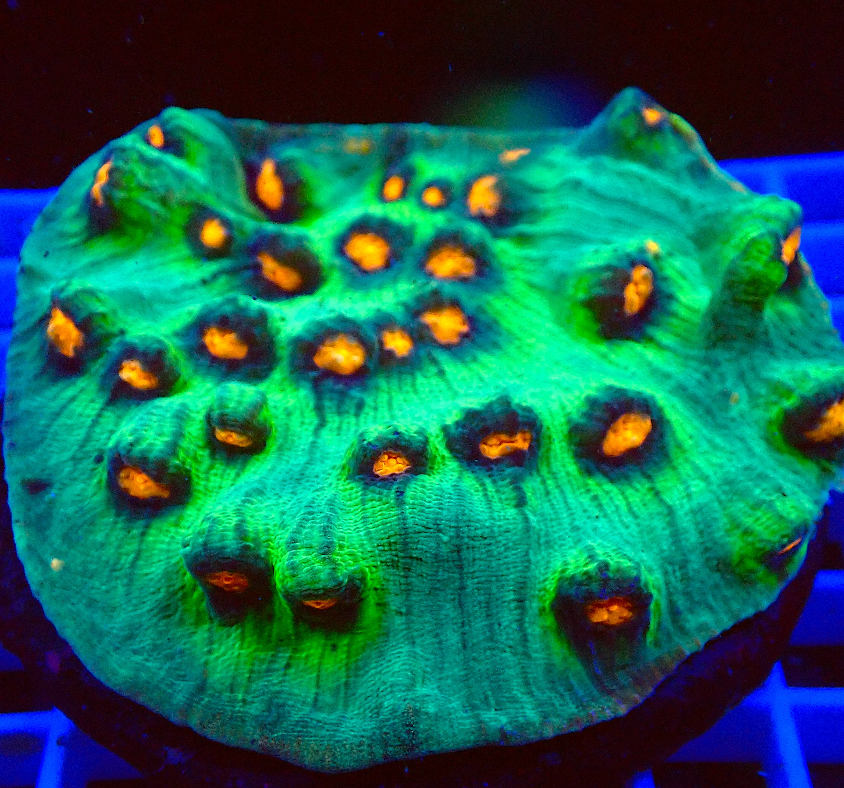 WYSIWYG1755803205762 Uniek stuk WYSIWYG Pectinia Space Invaders koraal. Eén op één, precies wat je ziet! Ben jij op zoek naar een echte eyecatcher voor je rifaquarium? Dit unieke WYSIWYG-koraal is een absolute must-have voor iedere serieuze reefkeeper. Geen stockfoto’s of verrassingen – wat je ziet, is exact wat je krijgt. En wat je krijgt, is spectaculair.