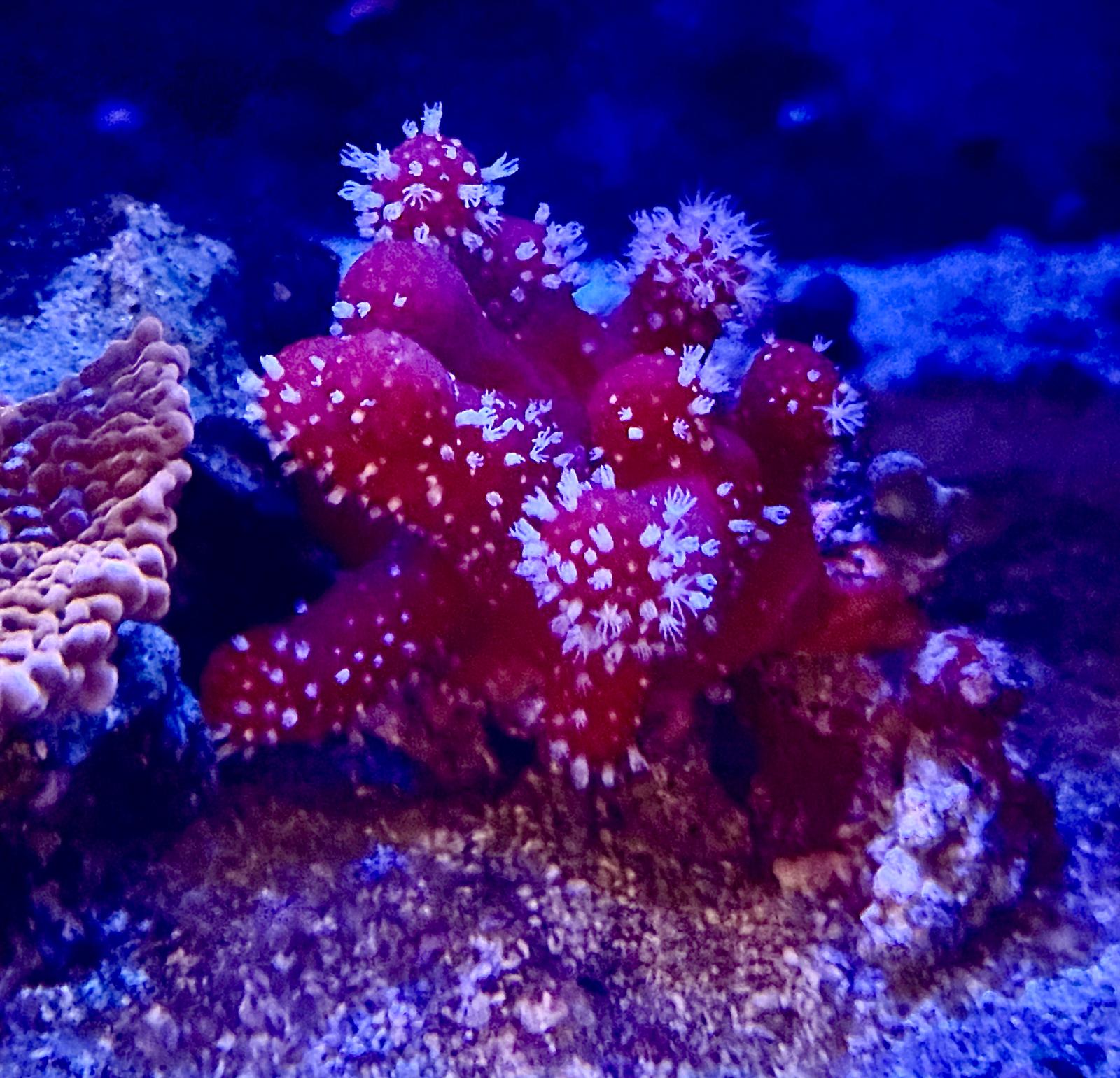 - Kleurrijk uiterlijk: Beschikbaar in warme tinten zoals rood, roze of paars, wat zorgt voor een opvallend contrast met ander koraal en levende stenen.