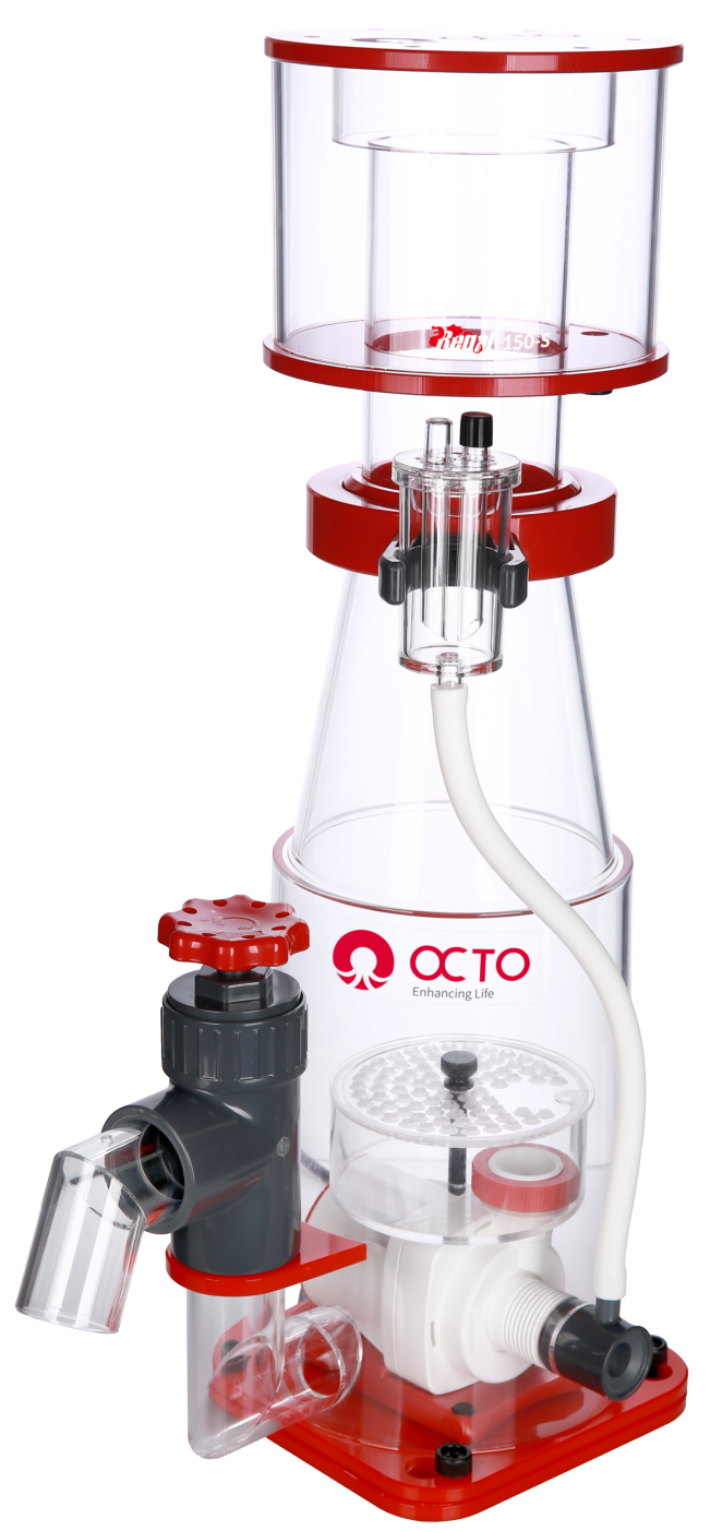 De Octo Regal 150-S Space Saving Skimmer is een hoogwaardige eiwitafschuimer die speciaal is ontworpen voor moderne zeeaquaria. Dankzij het compacte ontwerp past deze skimmer eenvoudig in kleinere sump-ruimtes, zonder in te leveren op prestaties. De krachtige Aquatrance 1800s pomp en het geavanceerde wijnkelk-vormige reactorkamer zorgen voor een efficiënte verwijdering van organisch afval. Hierdoor blijft het water in uw aquarium kristalhelder en gezond voor alle bewoners. De Octo Regal 150-S is eenvoudig te installeren, stil in gebruik en voorzien van degelijke materialen die bestand zijn tegen zoutwatercorrosie. Ideaal voor veeleisende aquarianen die het maximale uit hun zeeaquarium willen halen met minimale ruimte.