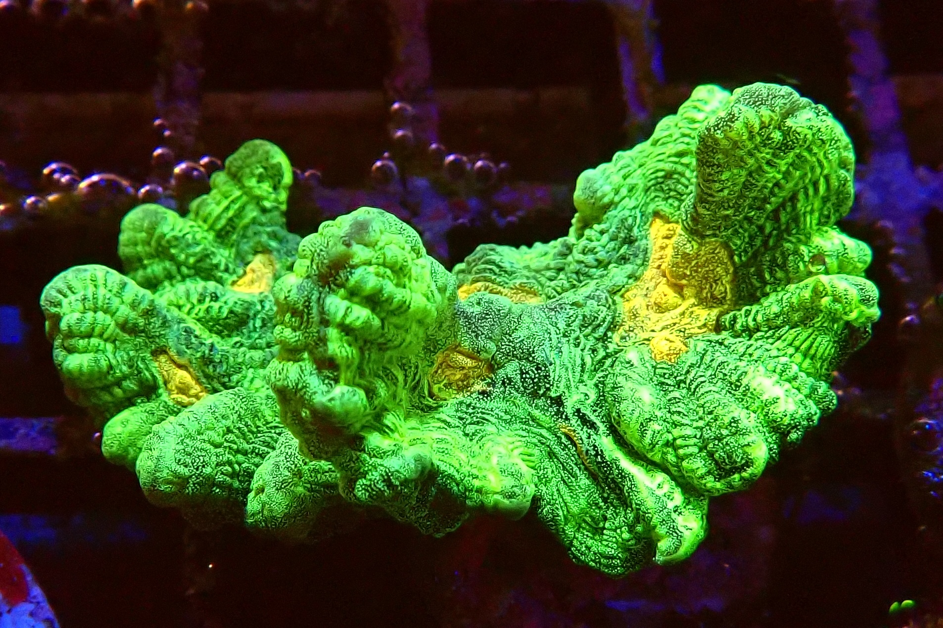 WYSIWYG1754992919086 Uniek stuk WYSIWYG Acropora Ultra Green koraal. Eén op één, precies wat je ziet! Ben jij op zoek naar een echte eyecatcher voor je rifaquarium? Dit unieke WYSIWYG-koraal is een absolute must-have voor iedere serieuze reefkeeper. Geen stockfoto’s of verrassingen – wat je ziet, is exact wat je krijgt. En wat je krijgt, is spectaculair.