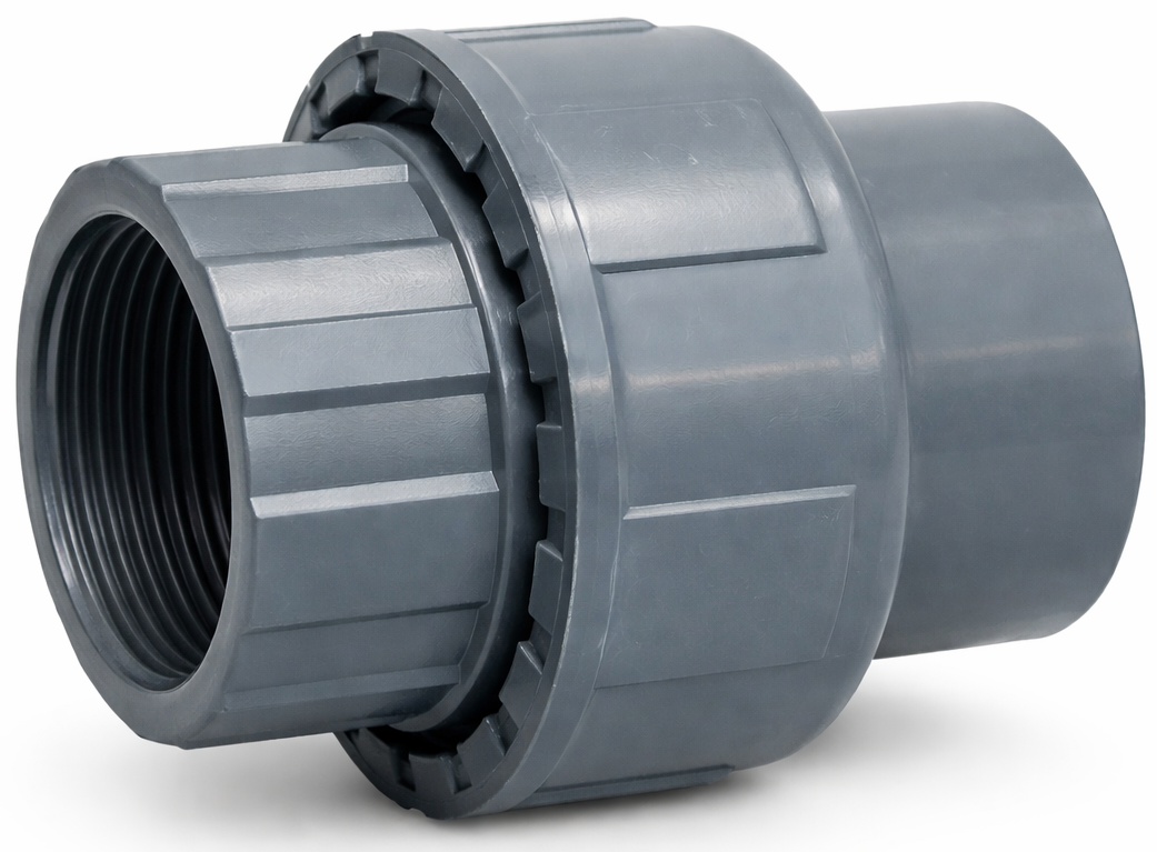 Deze PVC 3-delige koppeling wordt gebruikt voor het verbinden van leidingen in aquariuminstallaties, filtersystemen en andere watertechnische toepassingen. De koppeling heeft aan één zijde een binnendraad en aan de andere zijde een lijmverbinding voor PVC-buis.