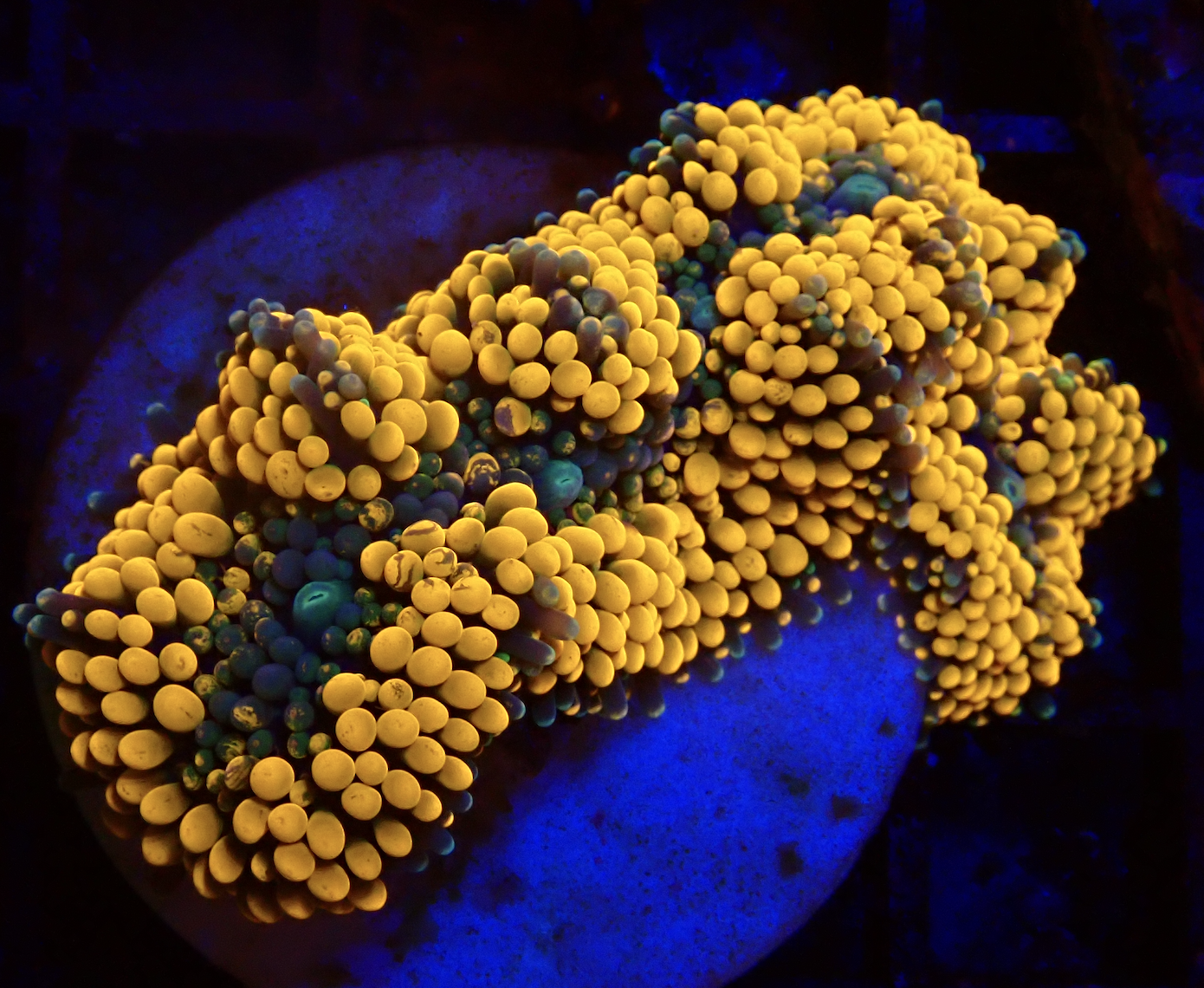 WYSIWYG1754993657079 Uniek stuk WYSIWYG Yellow Submarine Favia koraal. Eén op één, precies wat je ziet! Ben jij op zoek naar een echte eyecatcher voor je rifaquarium? Dit unieke WYSIWYG-koraal is een absolute must-have voor iedere serieuze reefkeeper. Geen stockfoto’s of verrassingen – wat je ziet, is exact wat je krijgt. En wat je krijgt, is spectaculair.