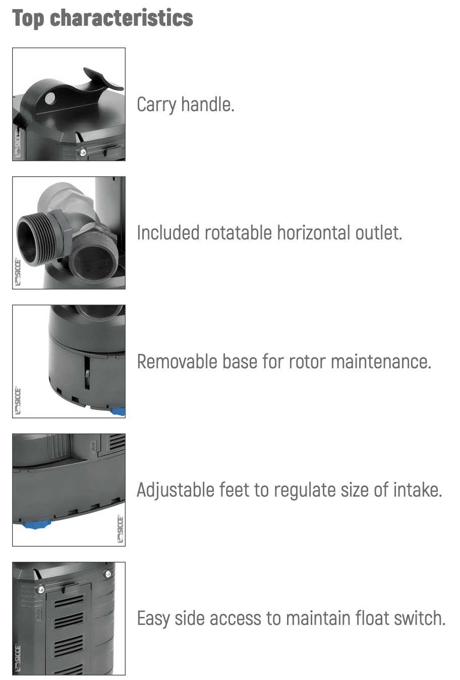 SICCE ULTRA 9000 multifunctionele pomp 8500 l/u, met zeer lage aanzuiging. Kenmerken Praktisch en compact. Ideaal voor regenwatertoepassingen, overstromingsgebieden, industriële processen en...