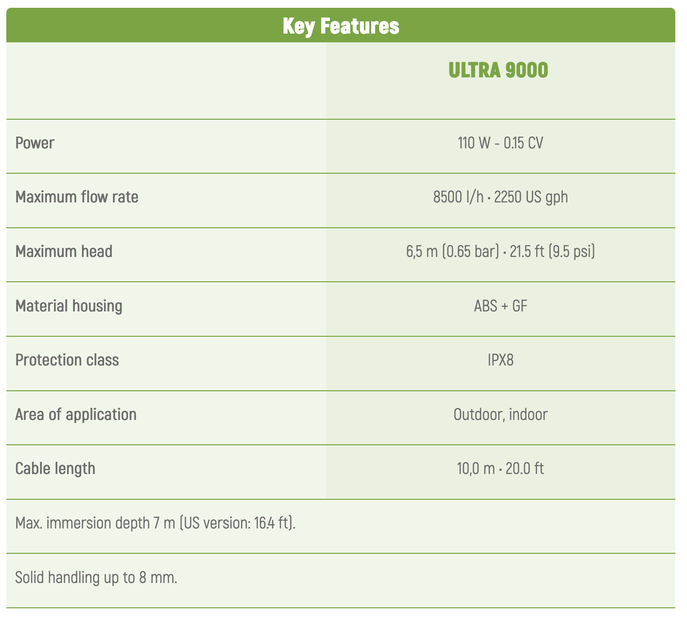 SICCE ULTRA 9000 multifunctionele pomp 8500 l/u, met zeer lage aanzuiging.