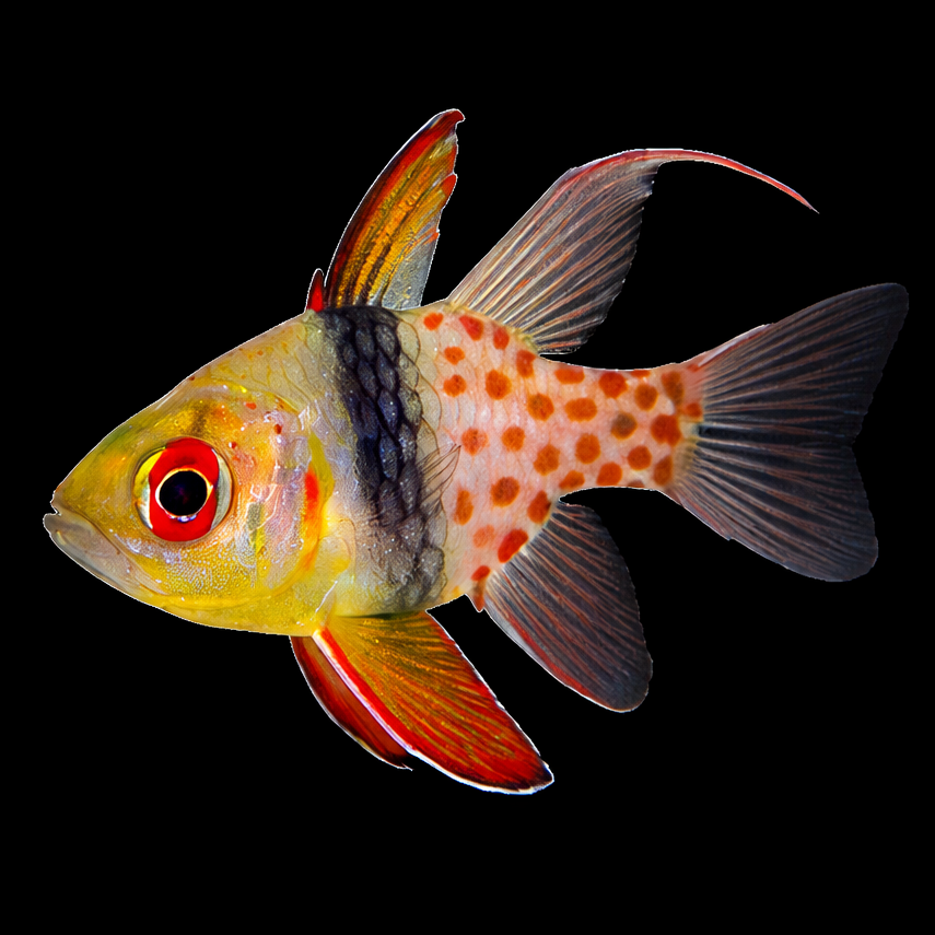 Ontdek de Sphaeramia nematoptera, beter bekend als de Pajama Kardinaalbaars, een bijzonder populaire en vreedzame vis voor het zeeaquarium. Deze opvallende vissoort valt direct op door zijn unieke kleurpatroon met een olijfgroene kop, een karakteristieke zwarte band in het midden van het lichaam en felrode stippen op het achterste deel. Sphaeramia nematoptera is geschikt voor zowel beginnende als ervaren zeeaquariumhouders en voelt zich het beste thuis in groepen van minimaal zes soortgenoten. Dankzij zijn kleine formaat en rustige karakter is deze kardinaalbaars ideaal voor gezelschapsaquaria met andere niet-agressieve soorten. Met de juiste verzorging en een stabiele leefomgeving geniet je jarenlang van deze prachtige en actieve scholenvis. Geef jouw aquarium een tropische uitstraling en breng leven in de bak met de Sphaeramia nematoptera.