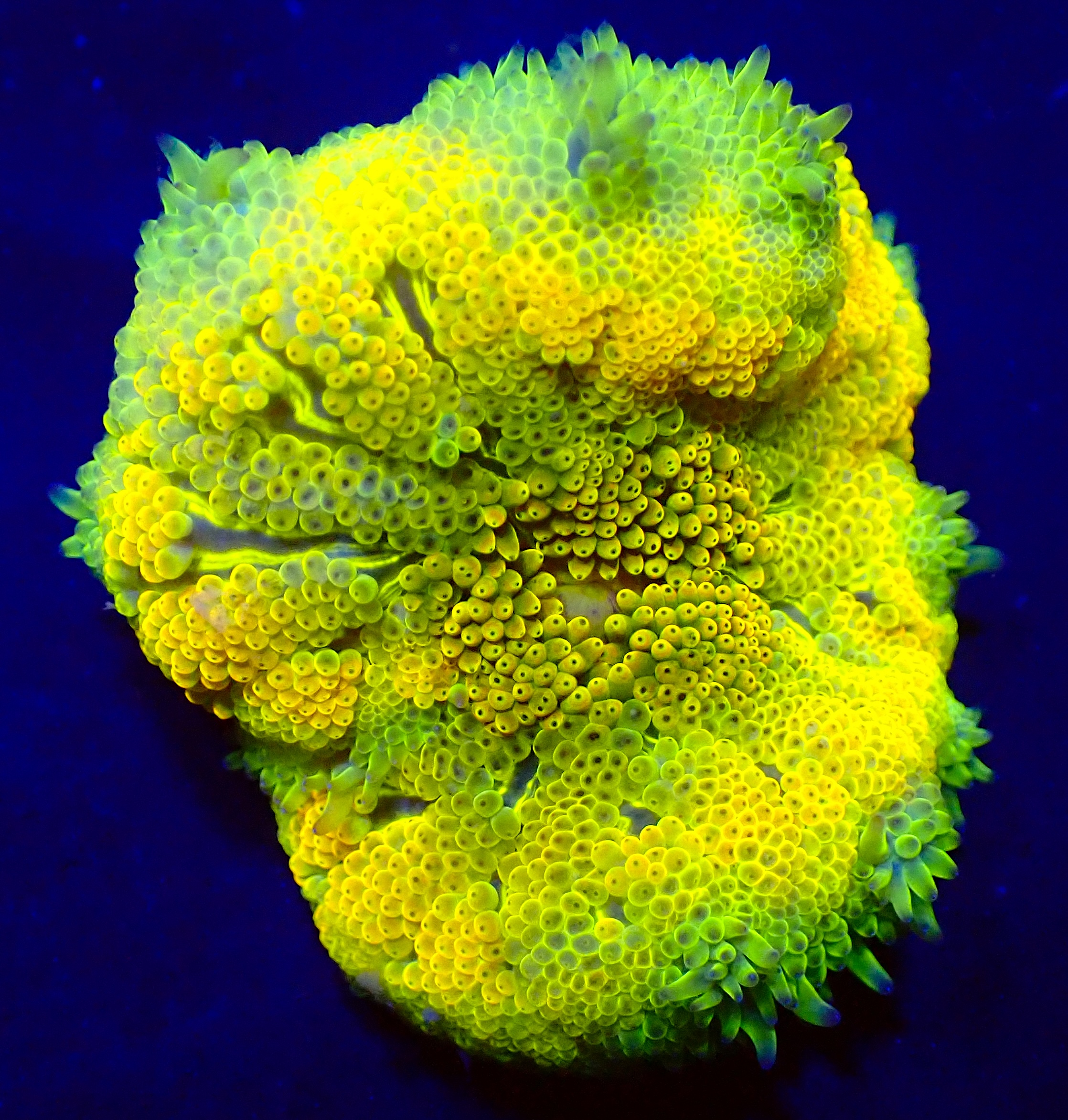 WYSIWYG1754993657079 Uniek stuk WYSIWYG Yellow Submarine Favia koraal. Eén op één, precies wat je ziet! Ben jij op zoek naar een echte eyecatcher voor je rifaquarium? Dit unieke WYSIWYG-koraal is een absolute must-have voor iedere serieuze reefkeeper. Geen stockfoto’s of verrassingen – wat je ziet, is exact wat je krijgt. En wat je krijgt, is spectaculair.