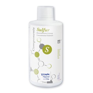 Tropic Marin Components Sulfur is een zuivere, geconcentreerde oplossing voor het nauwkeurig aanvullen van zwavel (S) in zeewateraquaria. Zwavel is een essentieel macro-element dat een belangrijke rol speelt in de opbouw van aminozuren, enzymen en eiwitten, en daarmee in het metabolisme van koralen en micro-organismen.