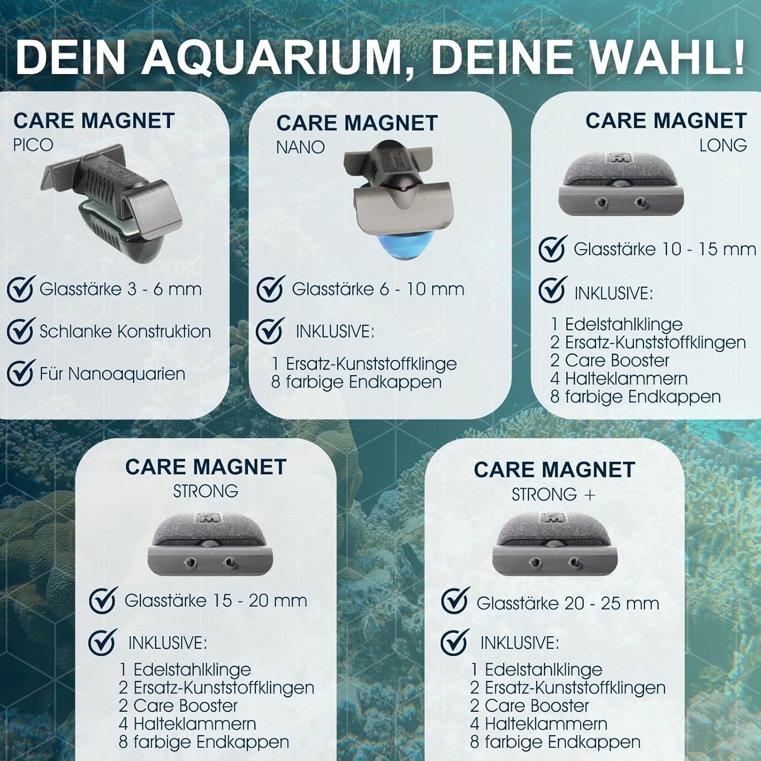 De Care Magnet Long is een handige tool op het gebied van het reinigen van aquariumruiten, bestaande uit een ergonomisch handvat en speciale plastic lamellen uit slijtvast high performance kunststof.