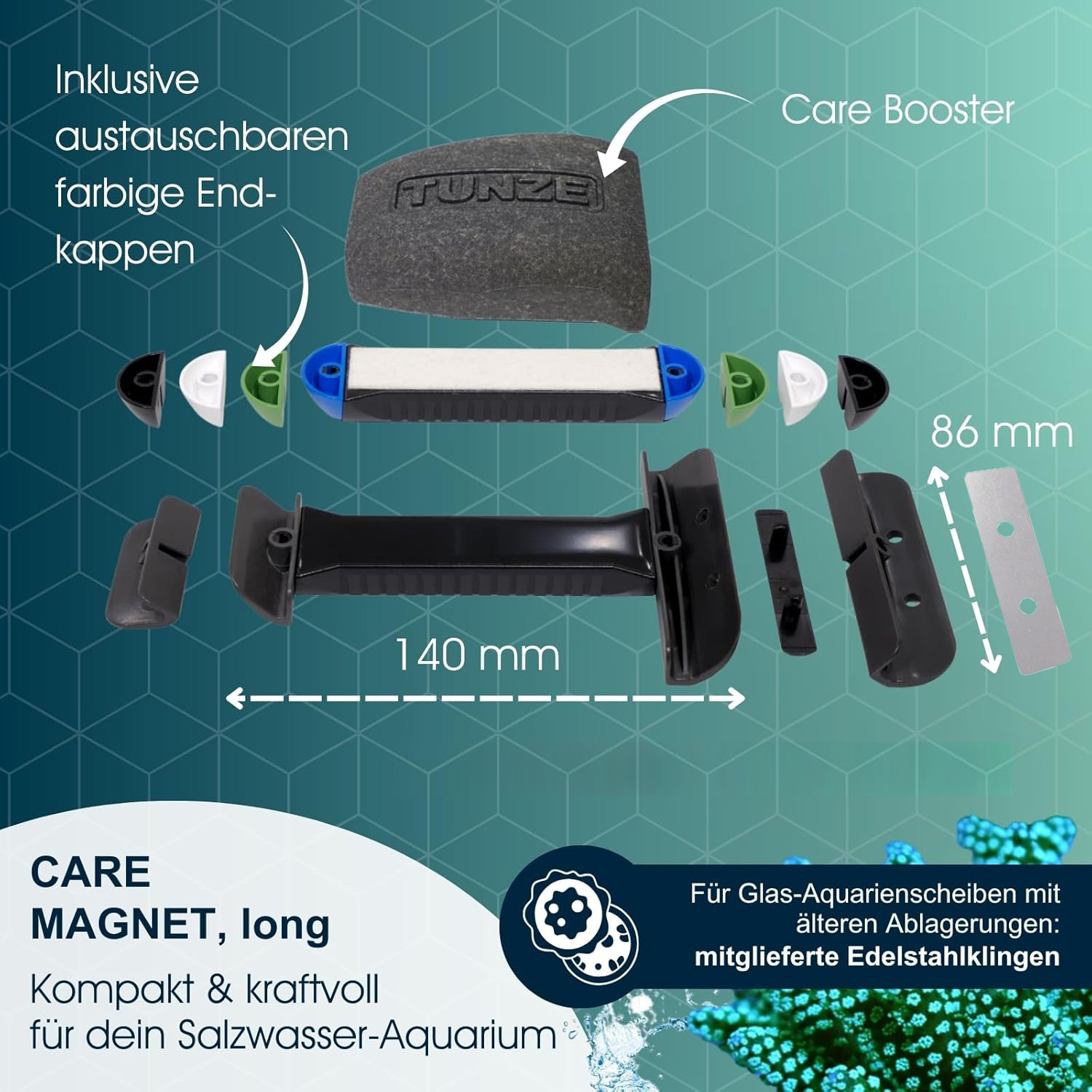 Tunze Care Magnet Long 0220.015 Aquarium Algae Cleaner - 3/8" To 1/2" Thickness. Geschikt voor een glasdikte van 10mm tot max. 15mm