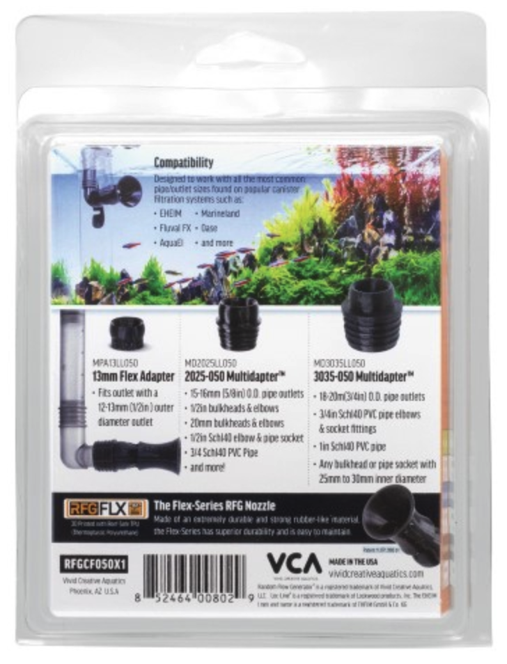 VCA-RFGS150-FLEX De VCA 1.5in RFGS Nozzle met Multidapter voor 1.5 inch PVC-buis is dé innovatieve oplossing voor het optimaliseren van stroming in uw zeeaquarium. Deze hoogwaardige nozzle van Vivid Creative Aquatics ...