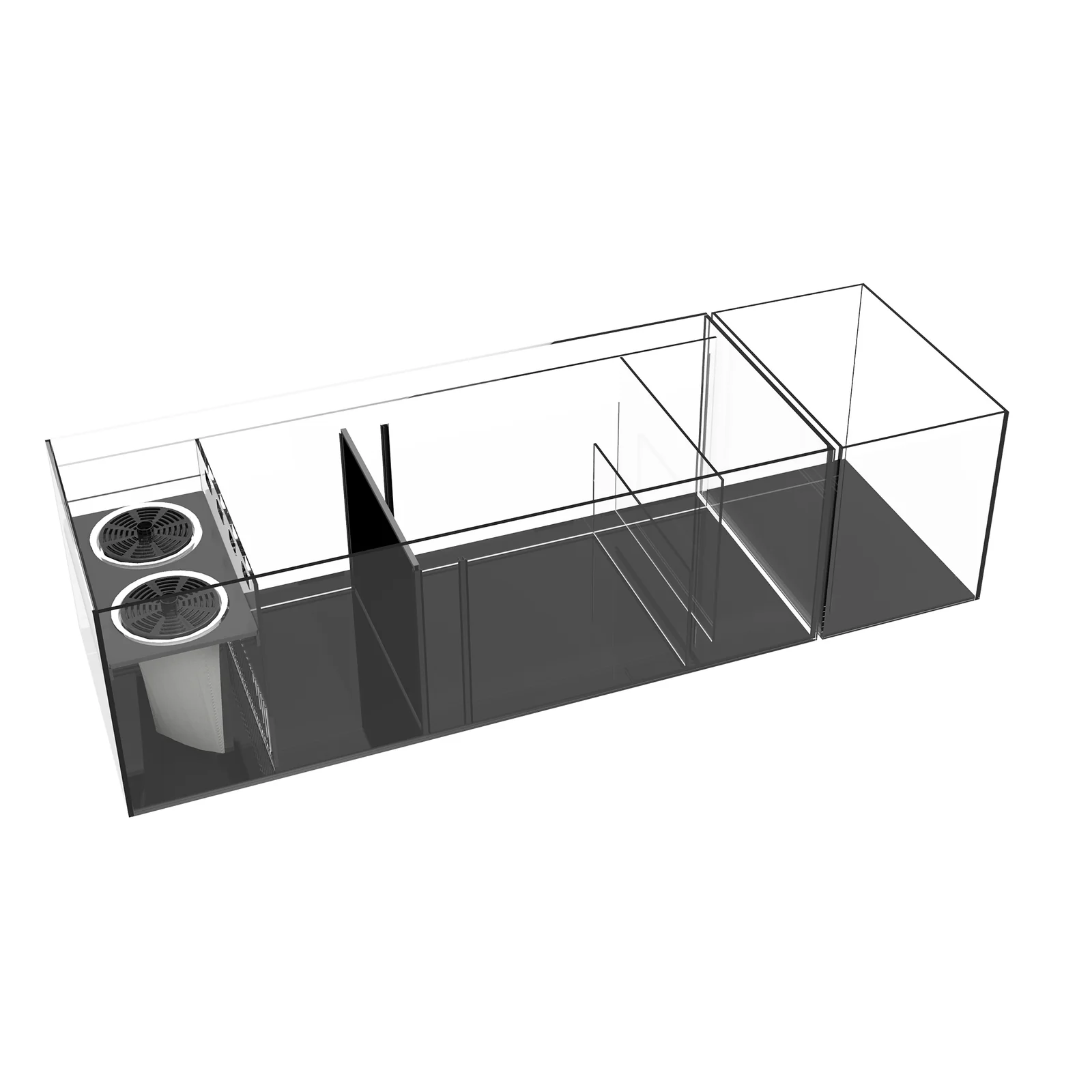 - Geavanceerd sump-filtratiesysteem met ruime skimmerkamer en flexibele indeling