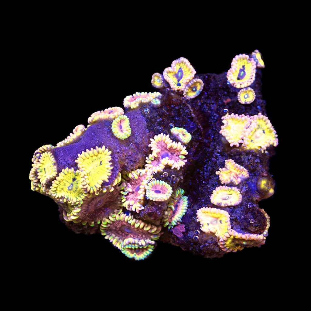 Uniek stuk WYSIWYG Zoanthus Pink Elephant / Stratocasters koraal. Eén op één, precies wat je ziet! Ben jij op zoek naar een echte eyecatcher voor je rifaquarium? Dit unieke WYSIWYG-koraal is een absolute must-have voor iedere serieuze reefkeeper. Geen stockfoto’s of verrassingen – wat je ziet, is exact wat je krijgt. En wat je krijgt, is spectaculair.
